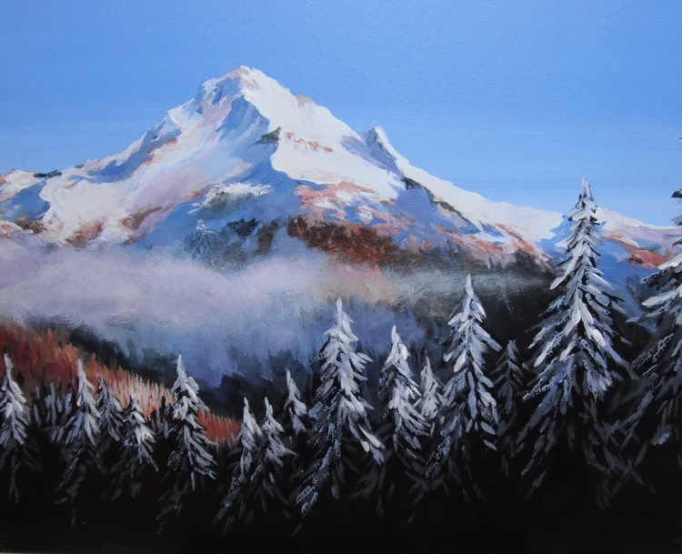 MT. HOOD UP CLOSE is tonight’s painting—all materials provided: canvas, easel, paints, brushes, apron and instruction. This class is repeated Wednesday, February 10th at Clarkes General Store & Eatery in Beavercreek, OR at 6:30pm. Hurry, spaces fill up fast!