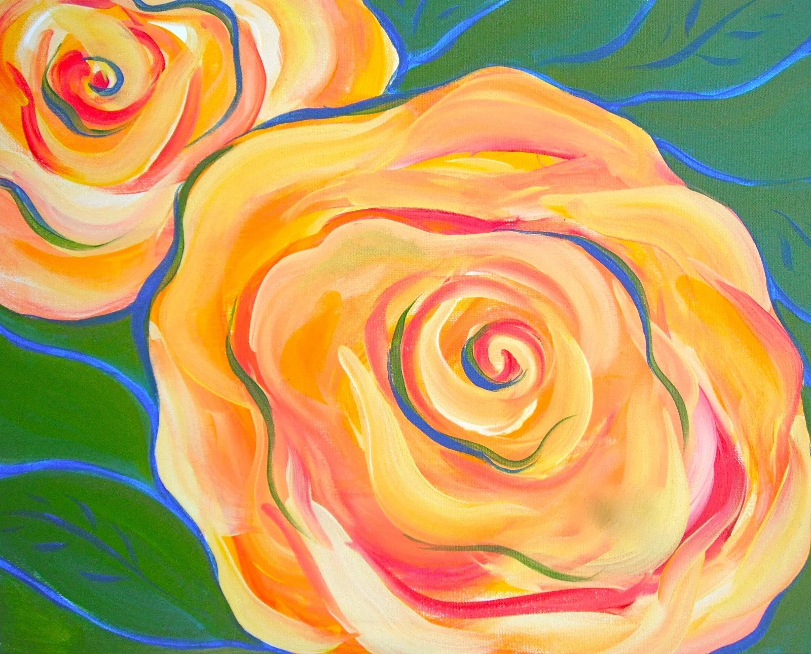 Our painting YELLOW FLOWERS don’t HAVE to be yellow! You are welcome to come and add your individual creativity and colors! I have everything you’ll need: canvas, easel, paint, brushes and apron. See you there!